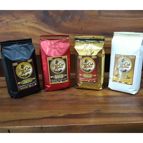 - Café Premium Super Café Mineiro: produzido nas fazendas da região entre a Serra da Canastra e o Lago de Furnas – MG, possui uma torra clara e grãos selecionados, sendo o café ideal para quem prefere a bebida com sabor suave. Pode ser encontrado nos tipos “cereja natural” e “cereja descascado”, em grãos ou moído.